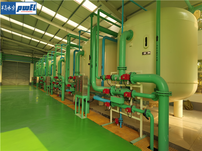 反滲透裝置的濃水進(jìn)入濃水池,作為濃水反滲透系統(tǒng)和多介質(zhì)過(guò)濾器反洗的水源。
