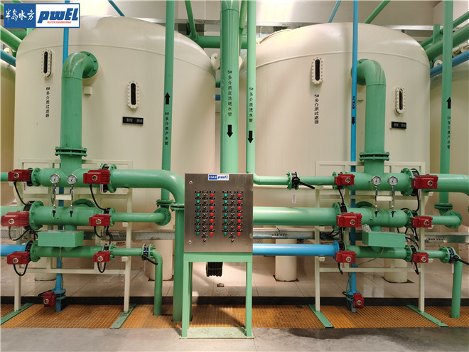 反滲透裝置的濃水進入濃水池,作為濃水反滲透系統(tǒng)和多介質(zhì)過濾器反洗的水源。